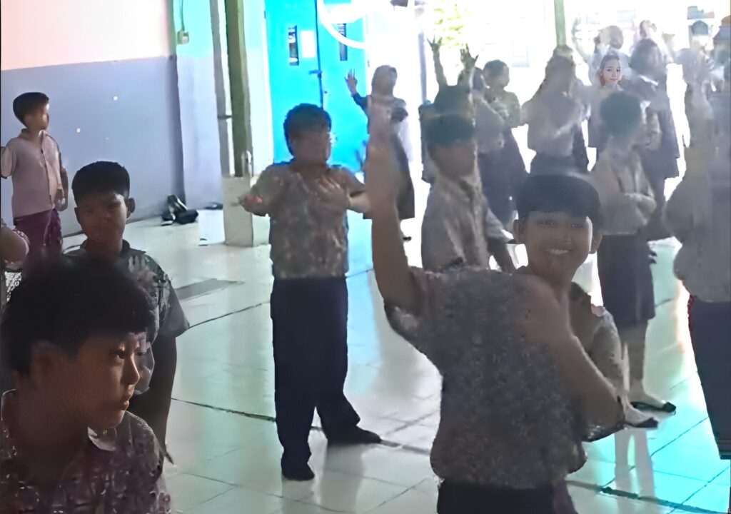 Siswa dan siswi SD Yapenka yang tergabung dalam Eskul Tari sedangĀ latihan menari dari daerah betawi.